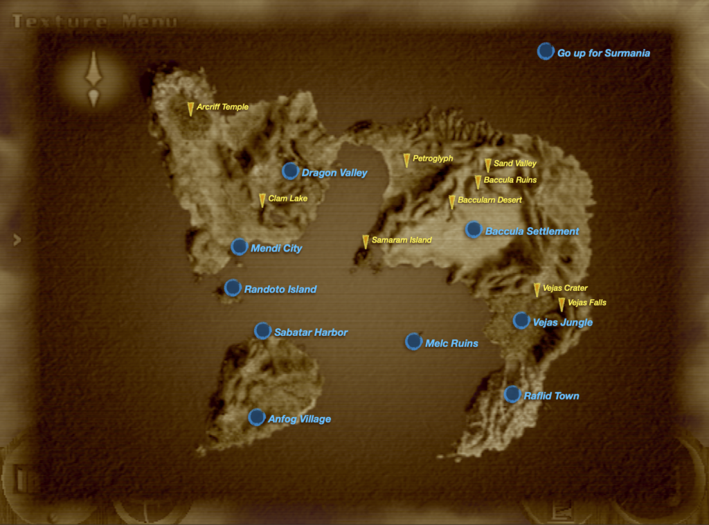 Já falei antes, mas como esse game é bonito. Ele tem de fato um gráfico surpreendente de modo geral, mas não é só isso, até porque o quesito é estilo artístico. Todos os locais que passamos são interessantes, vivos e com personalidade própria. Mesmo às escuras dungeons finais são bonitas e você sente que está no lugar proposto. Floresta são florestas, templos são templos, deserto é deserto e assim por diante. Sei que parece besteira isso, mas não é todo o game que consegue transmitir a sensação que o level design propõem. Quantos jogos não colocam para você tomar dano de calor em dungeons do tema fogo por não conseguirem criar um design interessante? Nesse maninho também gostei bastante dos modelos nos inimigos, chefes e NPC’s. Parece que realmente tudo está certinho no lugar. A única pika que achei nessa questan foram os over designs que voltaram com tudo se tratando dos nossos manos. É saia em cima de calça em cima de 5 cintos e mais 12 detalhes que chegam a doer os olhos. Não chega aos pés do 2, mas é uma gonorreia visual se pararem para olhar bem. Outra pika que posso comentar é a quantidade de cutscenes que temos em game. Mesmo as mesmas sendo muito bem dirigidas em geral, Grandia 3 faz jus ao seus 2 DVD’s. Tem coisas que daria para resolver com o sistema de diálogos, mas os manos vão lá e tocam uma ceninha na sua cara. É coisa de em alguns momentos você sair de uma e entrar em outra, coisa de doido. Podiam ter dado uma dosada que acredito que o game caberia tranquilo em um disco só. O último ponto que gostaria de salientar que fez não chegarmos aos 2.5 foi os portraits. Que além de serem muito poucos, são feitos que só o diabo. A maioria dos personagens parece que estão sempre sendo cínicos. Sai daqui!!! No final ainda com defeitos sigo achando esse game um dos melhores do nosso maninho PS2.