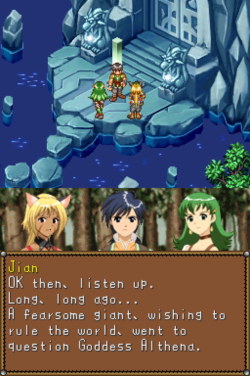 Essa bomba aqui conta a história de Jian Campbell e Lucia Collins (que tem e não tem nada haver com a Lucia do 2), que são dois aventureiros que trabalham fazendo entregas. Sim, o casal trabalha nos correios de Lunar, mas não desdenhem deste nobre trabalho, já que não é simples entregar aquelas blusinhas da Chein para a Ketlymariane sendo que tem um monte de monstros querendo comer o seu rabo. No mundo real tem uns cachorrinhos filha da puta que atrapalham os entregadores, eu sei, mas eles não causam envenenamento, maldição, confusão e afins. Pelo menos não normalmente. Voltando para o casal, a vida deles muda logo de cara quando resolvem ir até a cidade dos homens-bestas falar com o Rei deles e tentar mostrar que os humanos não são pouca bosta. É que existe um preconceito entre os feras e os humanos, já que eles são mais fortes que a nossa gente. A conversa não é simples, já que Jian acaba tendo que fazer papel de gladiador matando monstros na unha para provar seu valor e no final acaba sendo amaldiçoado pelo Rei, que é poucas ideias. O lado bom disso, é que o pessoal conhece Gabryel Ryan, que é a filha do Rei, mesmo com nome masculino, que os ajuda a escapar da situação e assim iniciar uma nova grande aventura. Que consiste primeiro em curar Jian, depois enfrentar a Vile Tribe e seu líder Ignatius, depois encontrar os 4 Dragões da deusa Althena para Jian se tornar um Dragonmaster e enfim enfrentar a própria Deusa Althena descontrolada. É, a mesma trama do primeiro jogo na cara dura. Sim, sim, como de costume a nossa turma recebe ajuda de mais personagens, no caso Flora Banks e Rufus Crow, mas eles são tão sem desenvolvimento que é como se não tivessem ajudado nada. Como disse antes, essa porra aqui não acerta em nada.